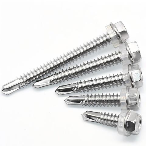 Tùy chỉnh bao bì 410 thép không gỉ M3.5 3.9 4.2 4.8 5.5 6.3 Hex máy giặt đầu Hex tự khoan vít