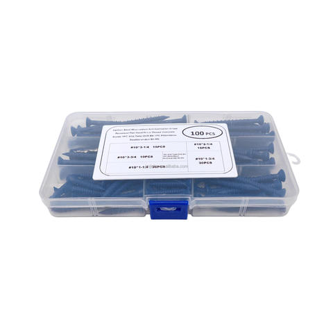 Tùy Chỉnh Nhà Máy Nhà Cung Cấp Tùy Chỉnh 100Pcs Màu Xanh Phẳng Đầu Bê Tông Tự Khai Thác Tự Khoan Vít Bộ